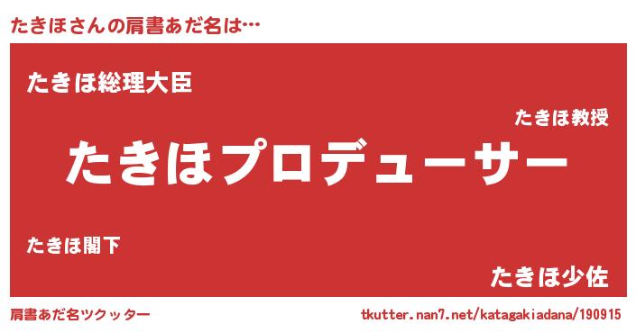 | 男性向けラノベタイトル風あだ名 | 『たきほに滅ぼされるだけの簡単なお仕事です』 |
