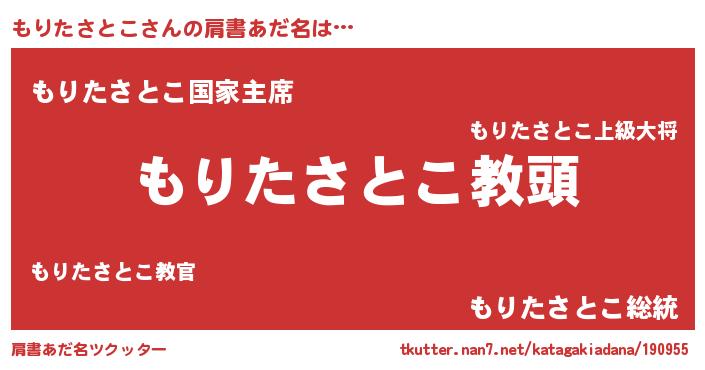 | ヒーロー風カッコイイあだ名 | 『ネオモリタサトコ』『仮面モリダー』 |