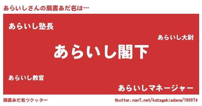 | 可愛いあだ名 | 『あらうちぇる』『あっらぃー』 |