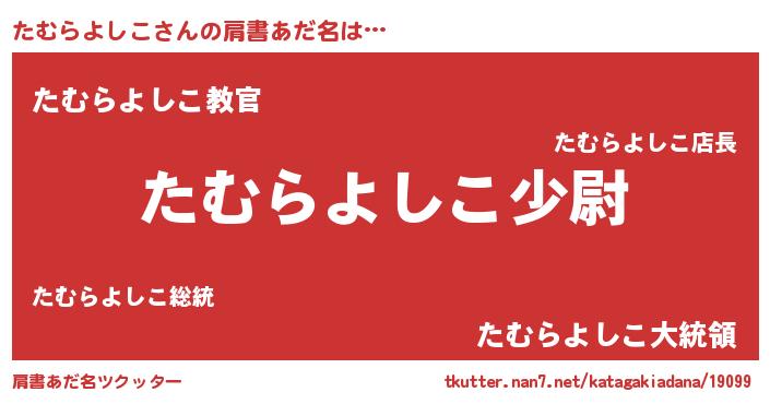 | ヒーロー風カッコイイあだ名 | 『仮面タムダー』『スーパータムラヨシコ』 |