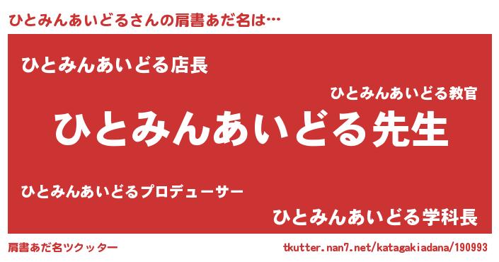 | ヒーロー風カッコイイあだ名 | 『ネオヒトミンアイドル』『仮面ヒトダー』 |