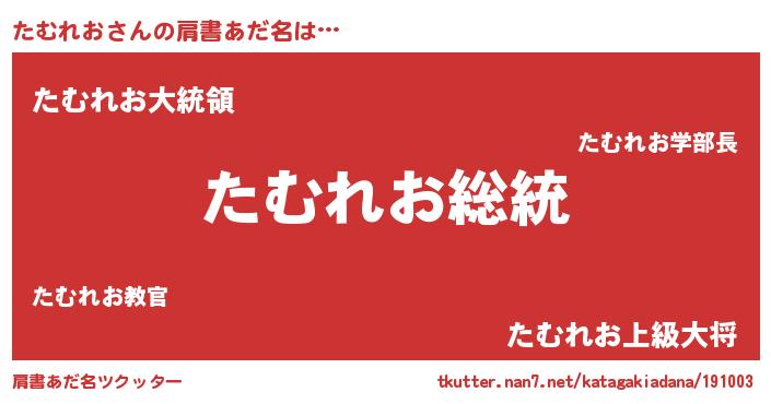 | 意味不明あだ名 | 『自称たむれお』『たむれおフォーエバー』 |