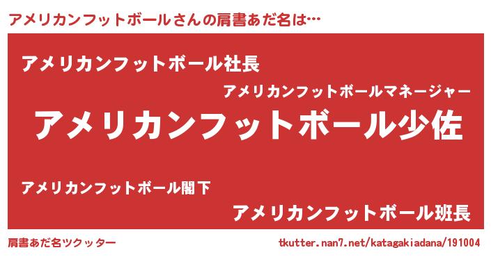 | 男性向けラノベタイトル風あだ名 | 『転生したらアメリカンフットボールだった件』 |