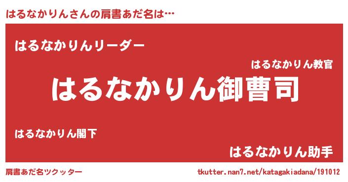 | 胡散臭い通販商品みたいなあだ名 | 『必ず成功する霊験あらたかなお札…その名も「はるなかりん」』 |