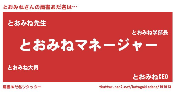 | 胡散臭い通販商品みたいなあだ名 | 『来世でも幸せになれる招き猫…その名も「とおみね」』 |