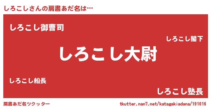 | ヒーロー風カッコイイあだ名 | 『スーパーシロコシ』『暗黒騎士シロ』 |