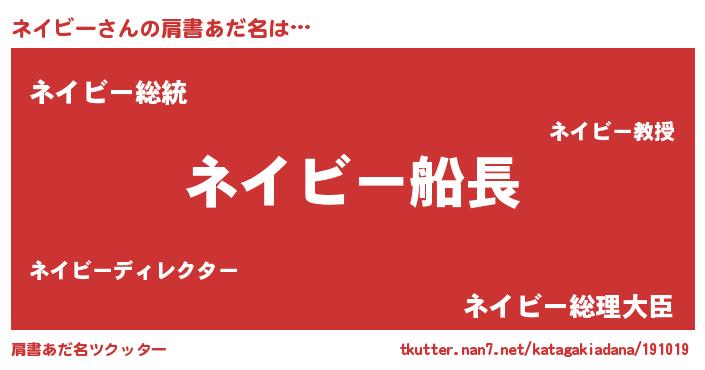 | 意味不明あだ名 | 『自称ネイビー』『ネイビーフォーエバー』 |