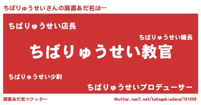 | 意味不明あだ名 | 『住所不定無職ちばりゅうせい(53歳)』 |