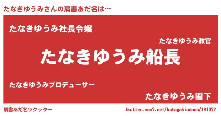 | ヘコむあだ名 | 『たなにー』『たなきゆうみ(苦笑)』 |