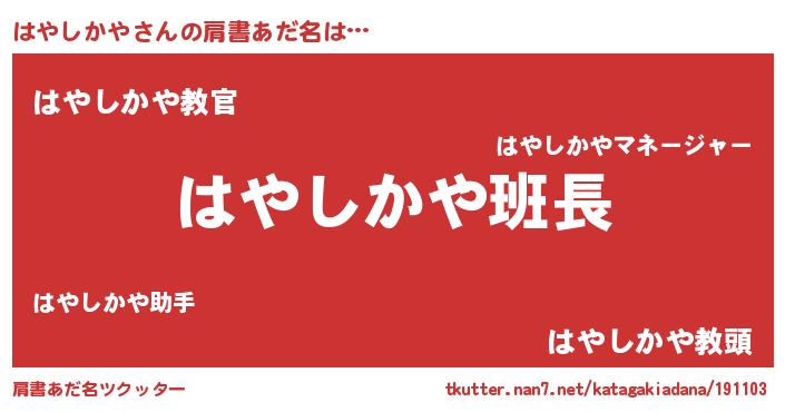 | ヘコむあだ名 | 『はやっ子』『はやしかや(苦笑)』 |
