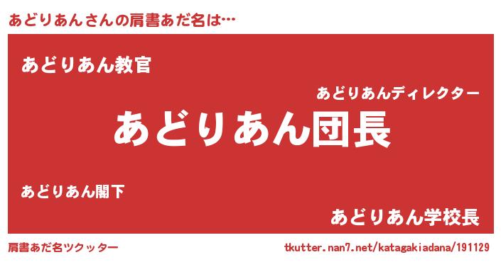 | 意味不明あだ名 | 『とにかく怪しいあどりあん』 |