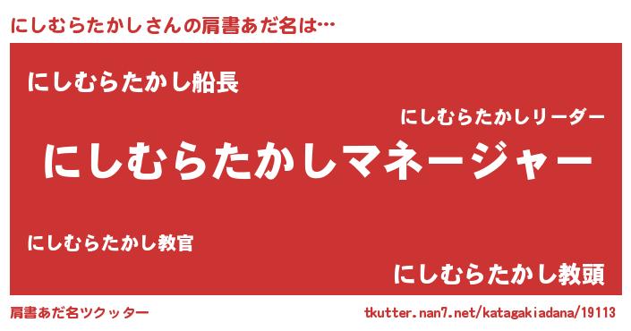 | ヘコむあだ名 | 『にしむらたかし(小並感)』『にしを』 |