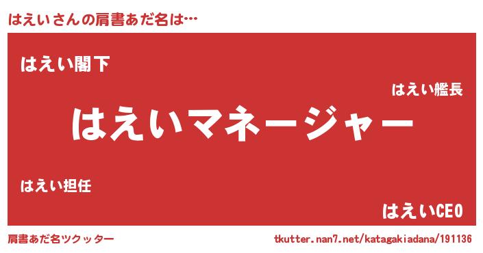 | 欧米人風あだ名 | 『アンジェラ・はえい』『マイケルはえい』 |