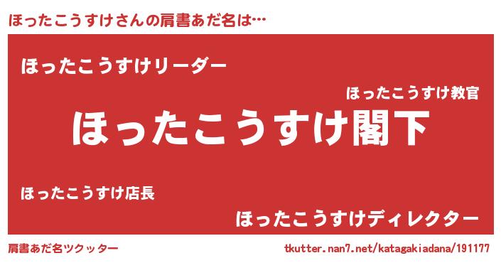 | ポケモン風あだ名 | 『ホッセウス』『ヒホッタコウスケ』 |