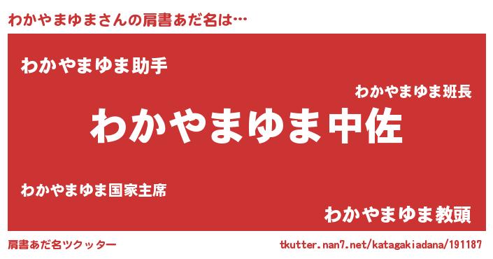 | 男性向けラノベタイトル風あだ名 | 『ワカヤマユマスレイヤー』 |