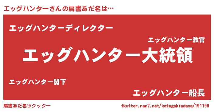 | ファンタジー風あだ名 | 『エターナルエッグハンターー』 |