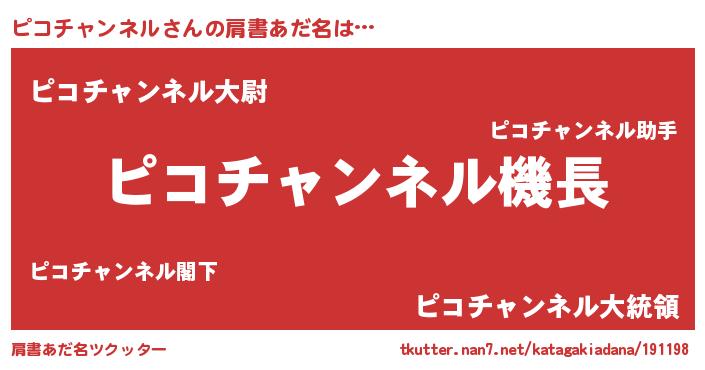 | 伝説のあだ名 | 『最古の陰陽師ピコチャンネル』 |