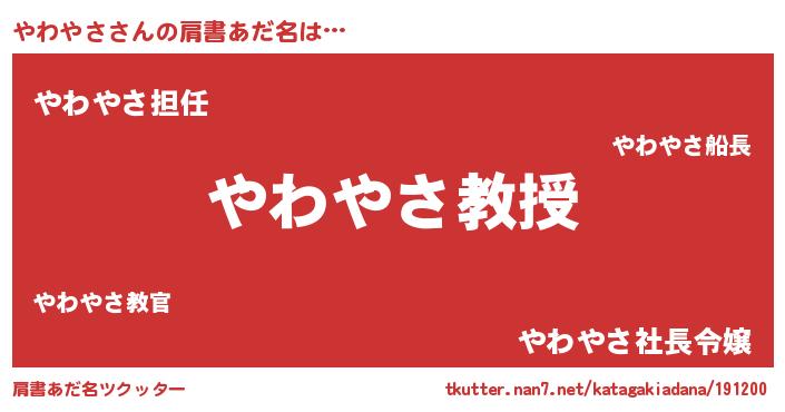 | ピコ太郎風あだ名 | 『ヤヤ太郎』『ピコヤ郎』『ヤコ八郎』 |
