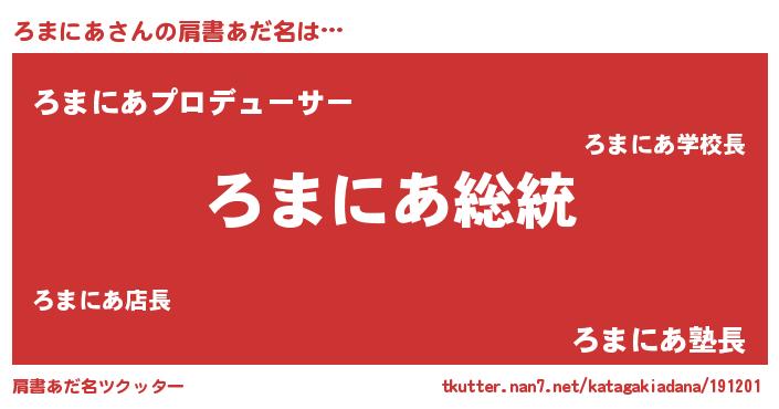 | 意味不明あだ名 | 『自称ろまにあ』『ペロリンろまにあ』 |