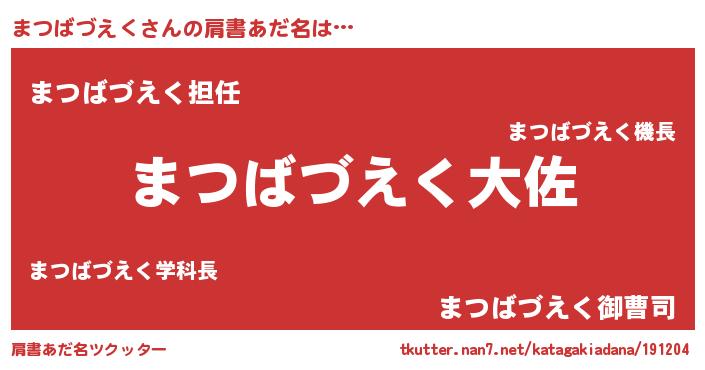| 男性向けラノベタイトル風あだ名 | 『マツバヅエクスレイヤー』 |
