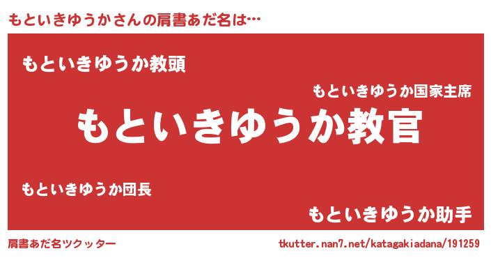 | 意味不明あだ名 | 『住所不定無職もといきゆうか(41歳)』 |