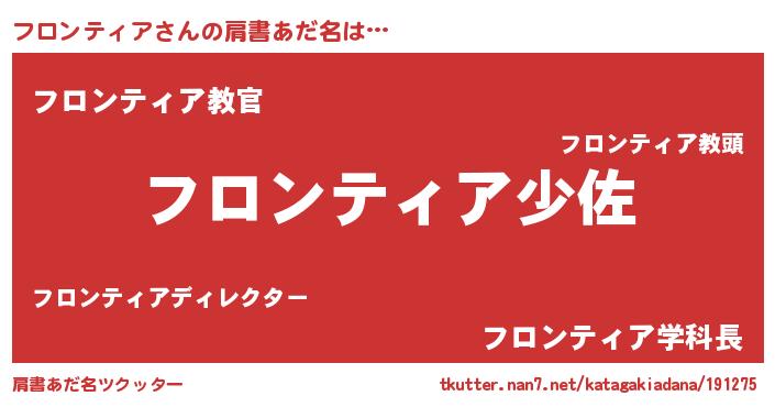| 男性向けラノベタイトル風あだ名 | 『フロンティアスレイヤー』 |