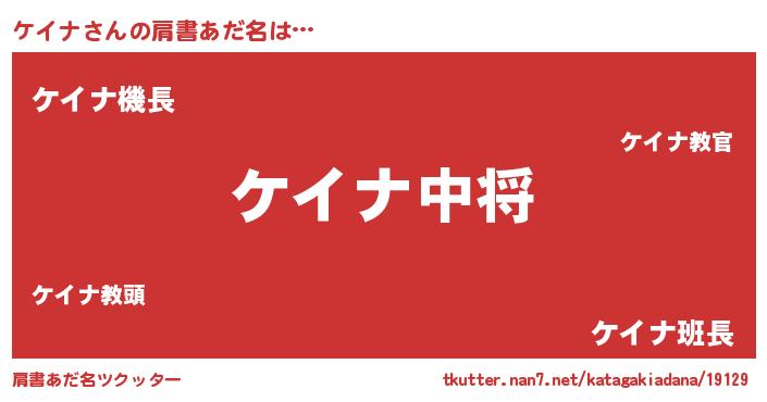 | 男性向けラノベタイトル風あだ名 | 『ケイナ~年齢イコール彼女いない歴の魔法使い~』 |