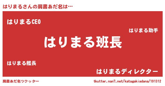 | 自動車の名前っぽいあだ名 | 『ハルトリパン』『ハリティマ』 |