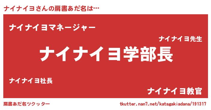 | ヘコむあだ名 | 『ナイナイヨ(遠い目)』『ナイにー』 |