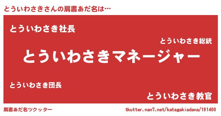 | 胡散臭い通販商品みたいなあだ名 | 『モテモテ間違いなしブレスレット…その名も「とういわさき」』 |