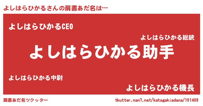 | 胡散臭い通販商品みたいなあだ名 | 『100人中100人が認めたイリジウム磁石…その名も「よしはらひかる」』 |