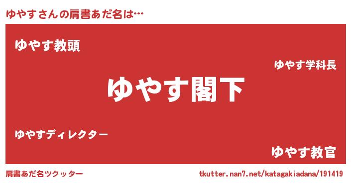 | 意味不明あだ名 | 『自称ゆやす』『永久保存ゆやす』 |
