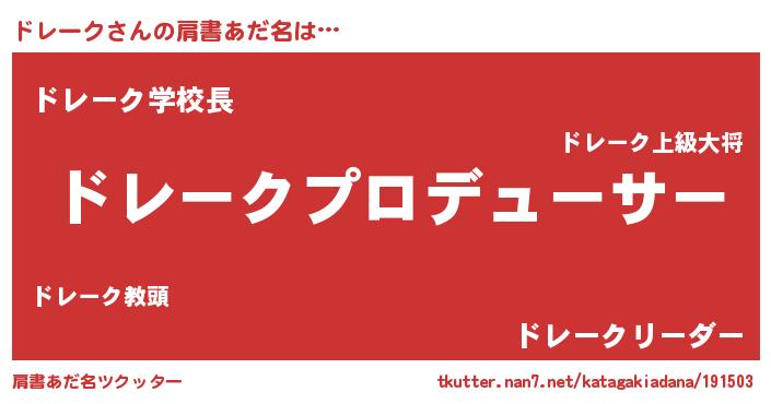 | 男性向けラノベタイトル風あだ名 | 『はたらくドレークさま!』 |