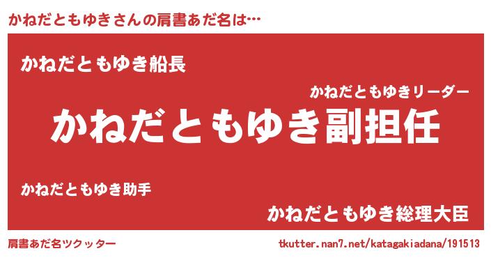 | 意味不明あだ名 | 『永久保存かねだともゆき』 |