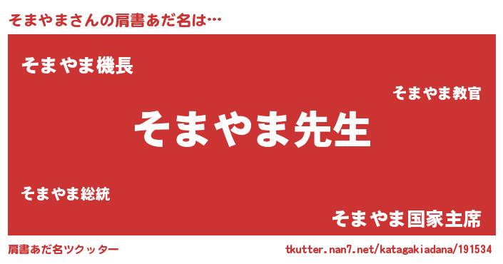 | ヒーロー風カッコイイあだ名 | 『ネオソマヤマ』『ウルトラそまやまマン』 |