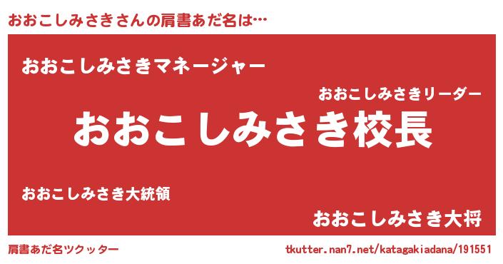 | 意味不明あだ名 | 『永久保存おおこしみさき』 |