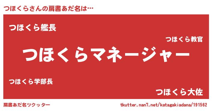 | ヒーロー風カッコイイあだ名 | 『仮面ツホダー』『友情の使者つほくら』 |