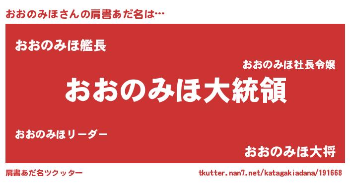 | 欧米人風あだ名 | 『おおのみほクリステル』 |