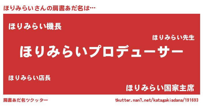 | 男性向けラノベタイトル風あだ名 | 『ほりみらいに滅ぼされるだけの簡単なお仕事です』 |