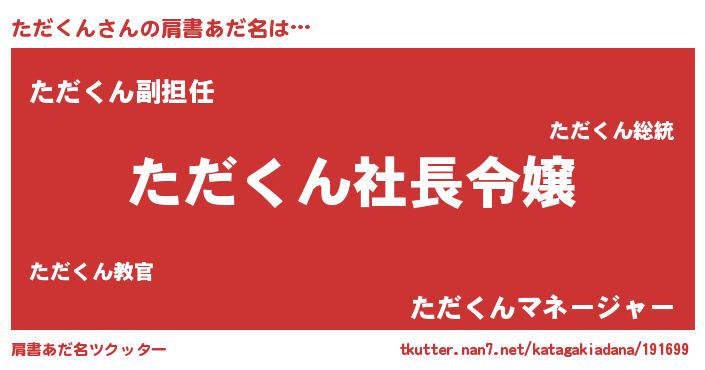 | 男性向けラノベタイトル風あだ名 | 『ただくんの憂鬱』『魔弾の王とただくん』 |