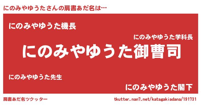 | 男性向けラノベタイトル風あだ名 | 『にのみやゆうたの憂鬱』 |
