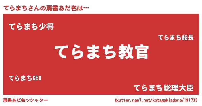 | ヒーロー風カッコイイあだ名 | 『仮面テラダー』『ウルトラてらまちマン』 |