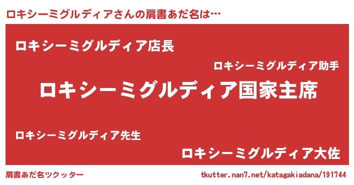 | ファンタジー風あだ名 | 『エターナルロキシーミグルディアー』 |