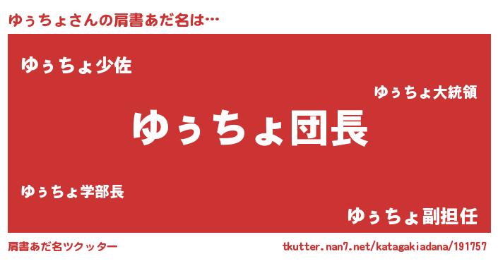 | 男性向けラノベタイトル風あだ名 | 『ダンジョンにゆぅちょを求めるのは間違っているだろうか』 |