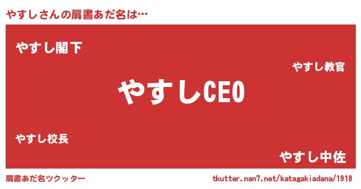 | ヒーロー風カッコイイあだ名 | 『スーパーヤスシ』『究極戦士ヤスシ』 |
