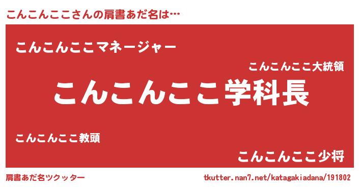 | ヒーロー風カッコイイあだ名 | 『愛の使者こんこんここ』『黄金騎士コン』 |