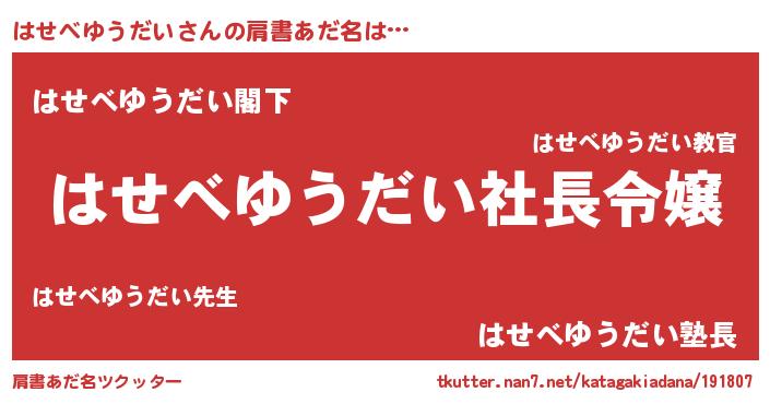 | 胡散臭い通販商品みたいなあだ名 | 『必ず成功する霊験あらたかなお札…その名も「はせべゆうだい」』 |