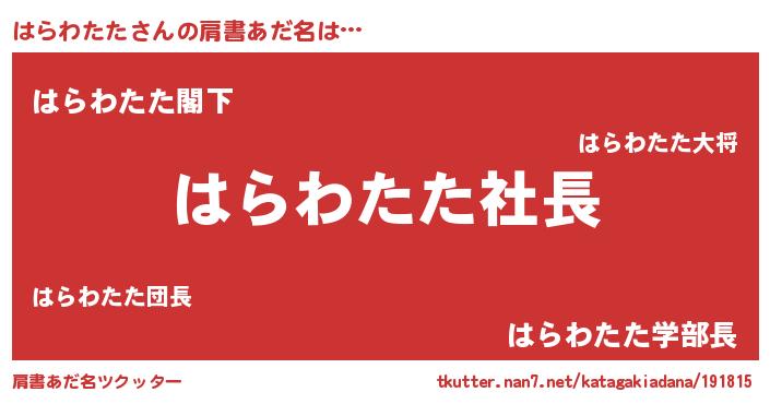 | ヒーロー風カッコイイあだ名 | 『スーパーハラワタタ』『魔戒騎士ハラ』 |