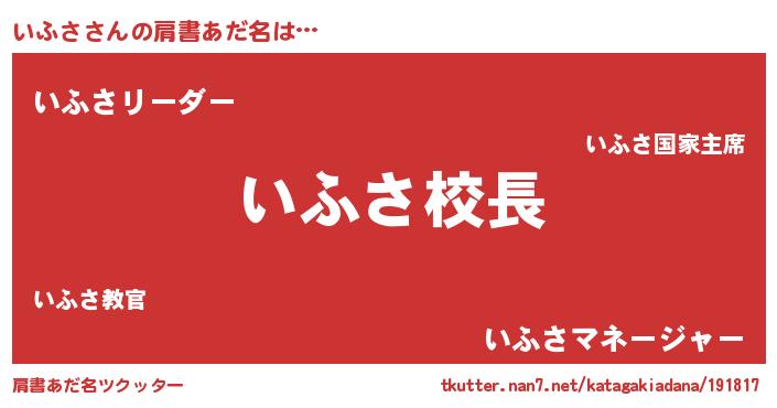 | 男性向けラノベタイトル風あだ名 | 『いふさという概念が存在しない退屈な世界 』 |