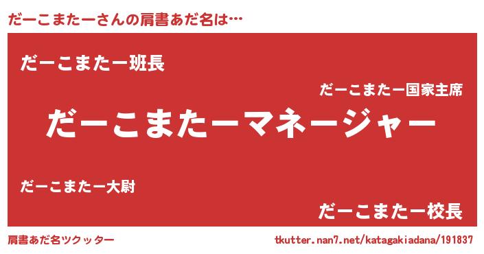 | 意味不明あだ名 | 『とにかく怪しいだーこまたー』 |
